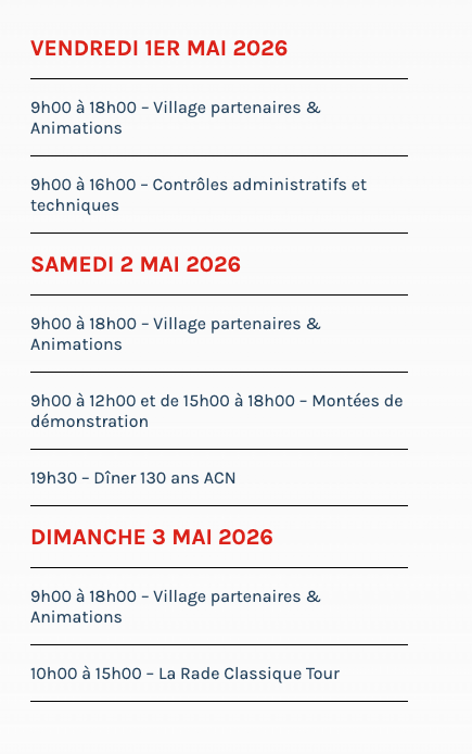 Forte de ce succès, la 5ᵉ édition de La Rade Classique marquera une nouvelle étape avec une évolution majeure du format. Le samedi 2 mai, la Rétrospective de la Course de Côte Internationale de La Turbie prendra une dimension encore plus immersive en se déroulant tout au long de la journée.